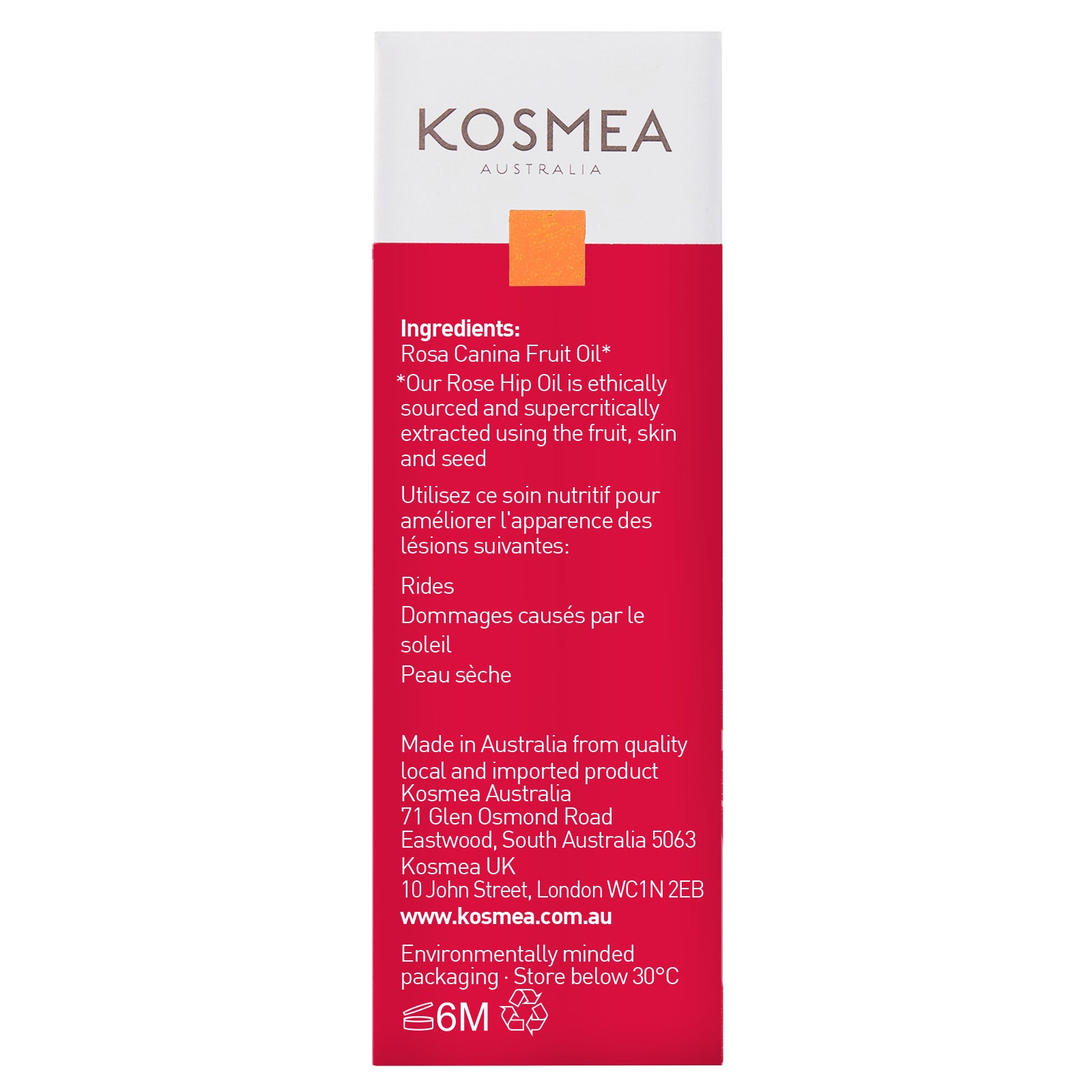The popular 10ml size is easy to carry in a purse or travel kit. Bursting with essential fatty acids, vitamins, and antioxidants, Kosmea rose hip oil is a dry healing oil that has the unique ability to deeply nourish and balance all skin types. With your first application, skin instantly feels smoother and softer. Over time, wrinkles, scars and stretch marks may begin to fade and your skin's natural healthy glow is restored. Use the amazing Kosmea Certified Organic Rose Hip Oil to repair and regenerate damaged skin including: